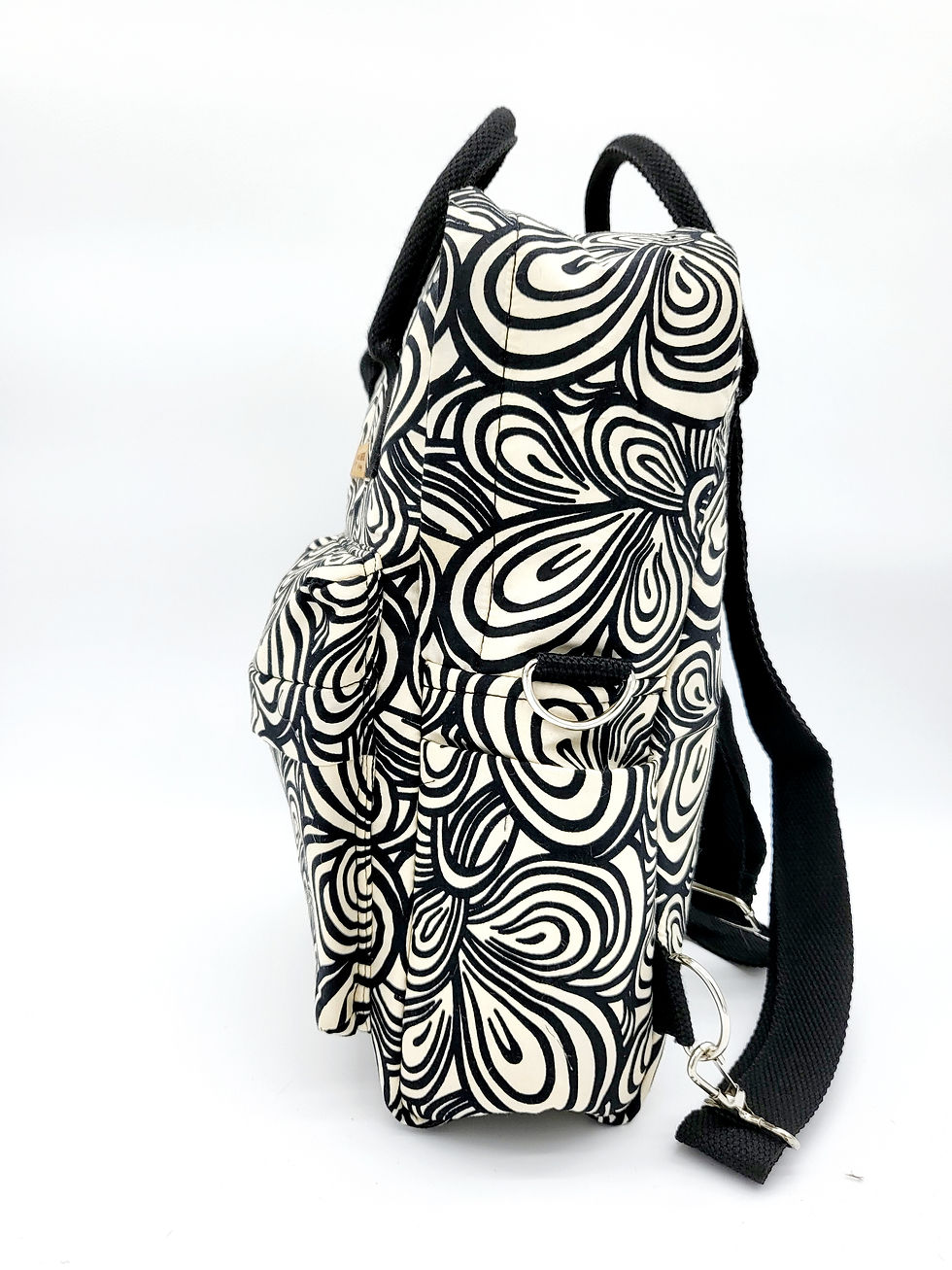 Cute leaves pattern cotton 3 ways convertible front pocket big backpack