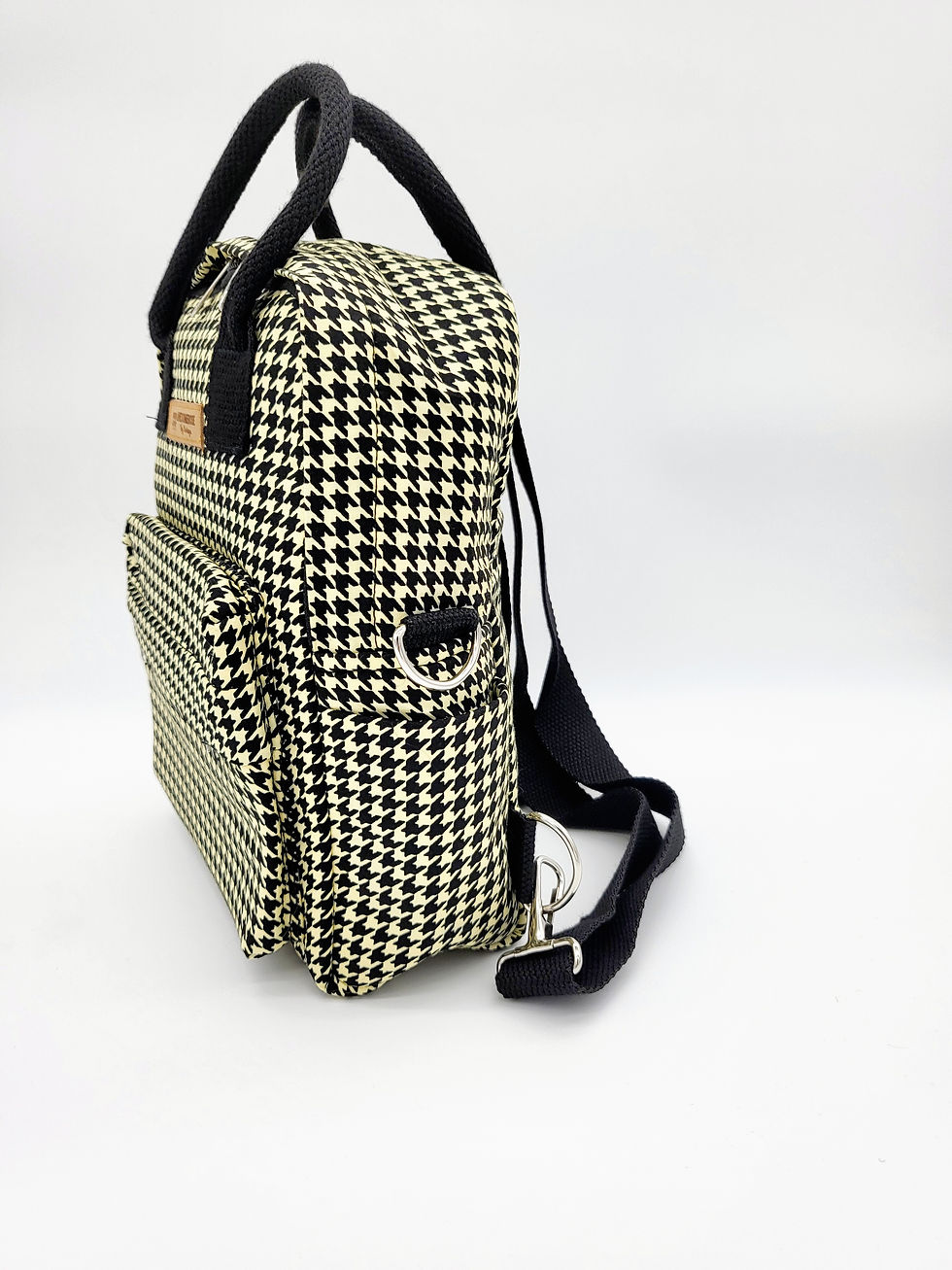 Houndstooth pattern cotton 3 ways convertible front pocket big backpack